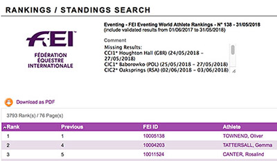 With the publication of the latest FEI Eventing World Athlete Rankings…